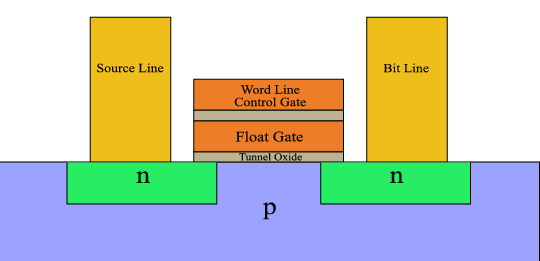 모든 메모리 셀에는 적어도 1비트를 저장할 수 있는 하나의 플로팅 게이트 트랜지스터가 포함되어 있다.