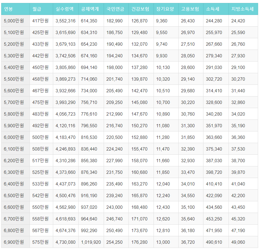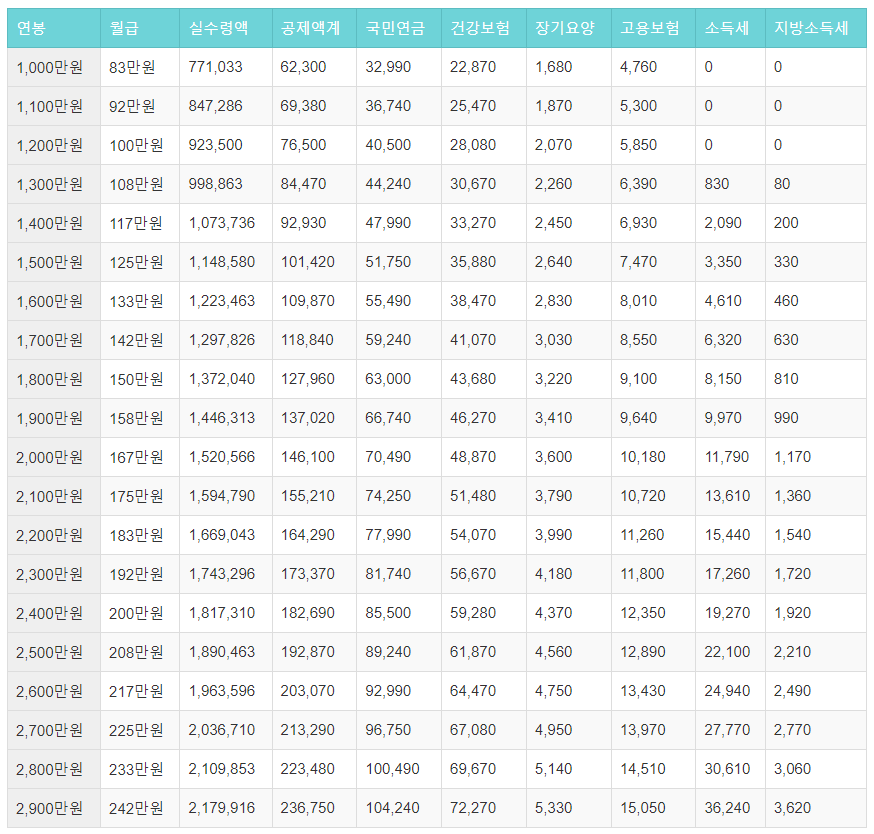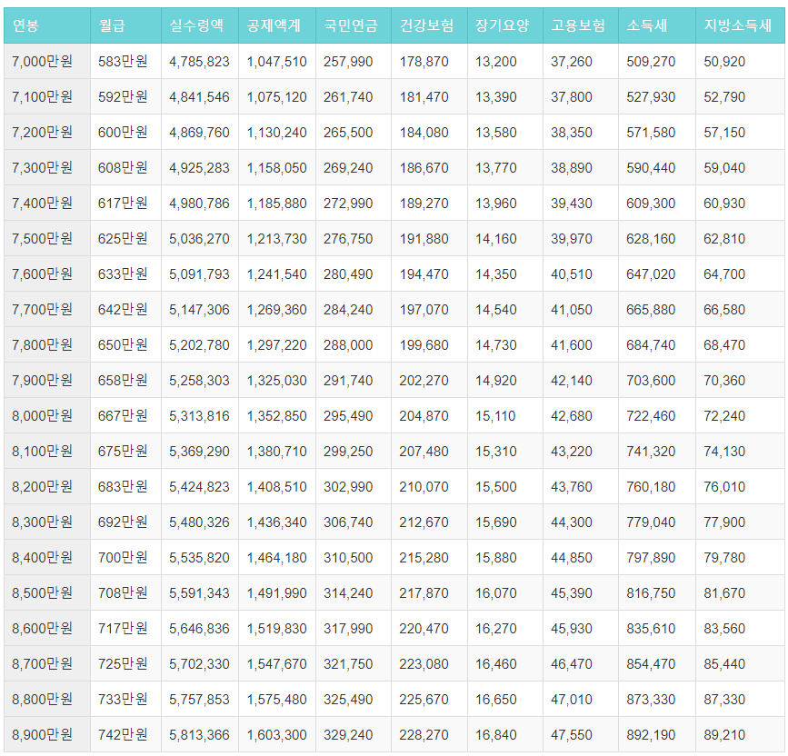 아래 연봉 계산기로 나온 표는 가장 범용적인 기준으로 만들었다.