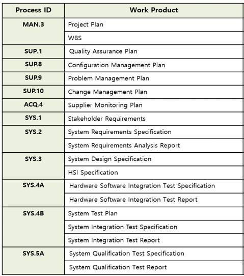 - 산출물 Review 수행 시, Review 수행에 대한 독립성은 다음 기준을 참고하여, Project plan의 Verification Strategy 수립 시, 반영한다. (I0 : 옵션, 다른 사람으로부터, I1 : 필수, 다른 사람으로부터, I2 : 필수, 다른 팀의 사람으로부터, I3 : 필수, 다른 회사의 사람으로부터)